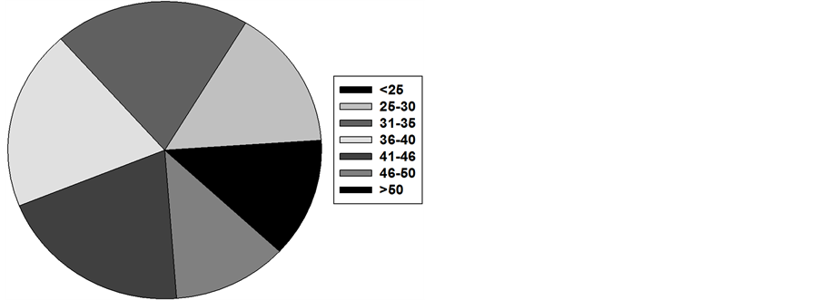 According to (Figure 2), the majority sample size their age ranged between 31 to 35 year and 40 to 45 year, and they account 20.1%, while the age from 30 to 36 year are about 19.5%, this followed by ranged age between