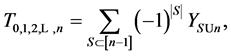 Therefore it is clear that there is a symmetric relationship between the T terms and the corresponding Y terms, in the case of 1, 2 and 3 examinations. The pattern of these expressions becomes more obvious in case of 4 examinations: (which will be proved along with the general case) to make it more obvious: