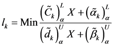 Now the lower and upper bound for the respective α-cut intervals of the objective function are defined as