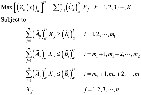 Since, above problem (15) have fuzzy coefficients which have possibilistic distribution in an uncertain intervals and hence the problem can be written in terms of its α-cut intervals.