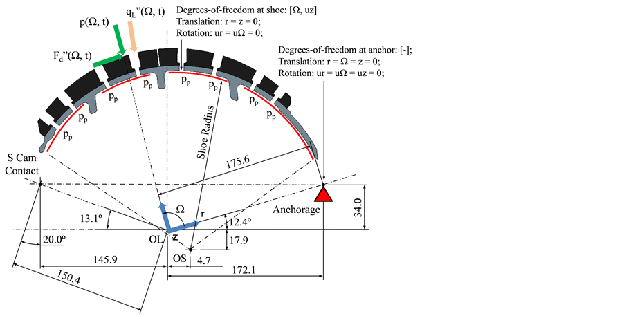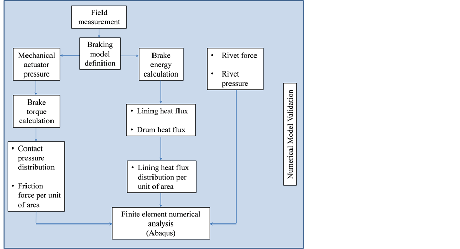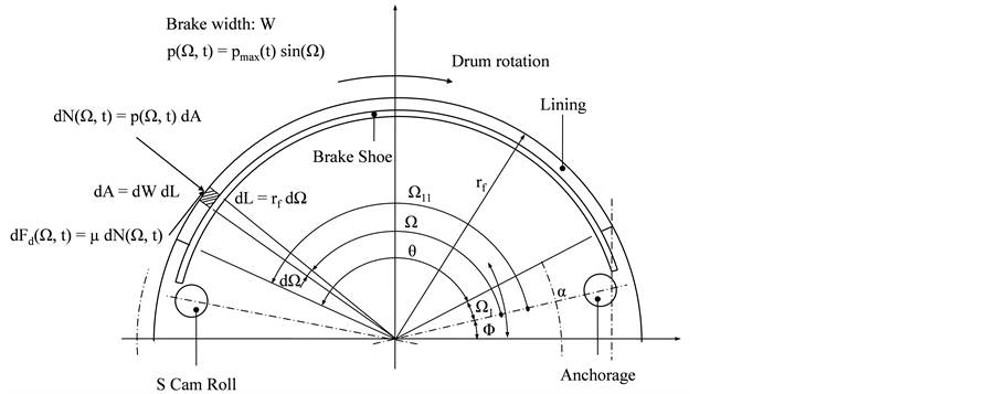 During pneumatic brake system actuation, the vehicle’s driver, by application of the brake pedal valve [1] , makes pressurized air enters inside front and rear mechanical actuators, generating forces which will pull the brakes shoes and linings against the rotating drums [2] [3] . Brake torque is then, generated on drum’s internal surface, resulting angular deceleration of the vehicle’s wheels.