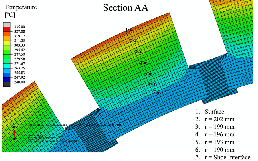 Figure 19. Friction material temperature distribution: Experimental × Numerical.