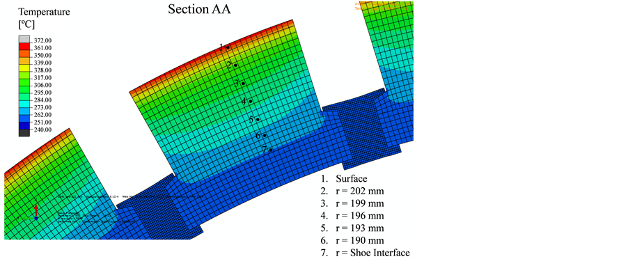 Figure 11. Temperature distribution on Section AA at maximum torque instant.