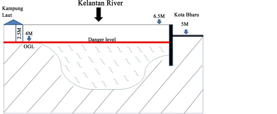 happened was confirmed by Azuhan [1] of the Post Flood Recovery Unit, Prime Minister Department, Malaysia, who explained it eloquently in a paper presented on 2014 Kelantan Flood at the National Geoscience Conference held at Kota Bharu in July 2015. Note that Kampung Laut site marked in Figure 5 was about 0.5 km north (downstream) of Pasir Pekan Hilir shown in Figure 5.