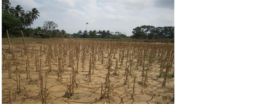 Hematite gives reddish coloration to any soil in the well-drained areas of Malaysia [17] . Hence, reddish- brownish coloration of the silted sediments at Pasir Pekan Hilir (Figure 7) was indicative of the presence of some hematite, which was confirmed by XRD analysis (Figure 3). Mica and feldspars take a long time to weather and consequently release some plant nutrients they contain into the soils. It means that the sediments deposited on the agricultural land during the flood at Pasir Pekan Hilir were infertile; hence, under their natural conditions were not expected to be good media for crop production.
