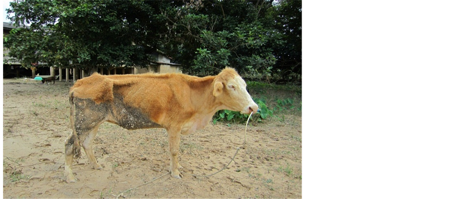 Figure 8. A cow suffering from malnutrition from lack of grass.