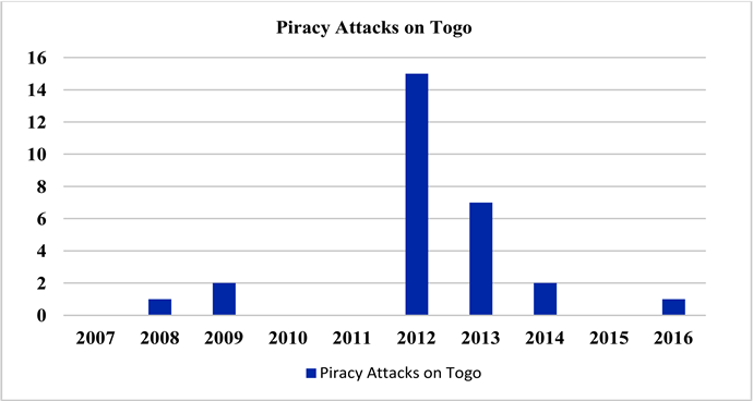 Figure 3. Pirate attacks on Togo. Source: Author’s compilation from [9] [10] [11] .