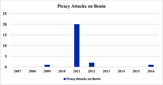 Figure 4. Piracy attacks on Benin. Source: Authors’ compilation from [9] [10] [11] .