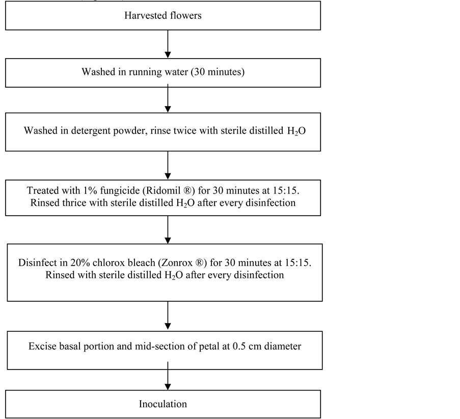 Figure 1. Schematic diagram showing the step-by-step procedure for surface Sterilization of the petal explant of Red Katuray.