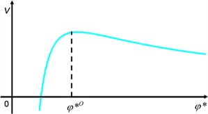 Since the model of the present paper is stochastic, the optimal timing of the foreign direct investment is expressed by the cut off level of φ*. Typical relationship between φ* and V is depicted as a one-peaked trajectory with the optimal value of φ* being φ*O on φ*-V space as in Figure 1, by assuming ε = 0.5, η = 2, γ =