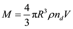 where R and r are the particle radius and mass density, respectively, nd is the particles number, and V is the volume occupied by the cloud, and the number of particles nd, in air as well as under vacuum is calculated by the formula [23] :