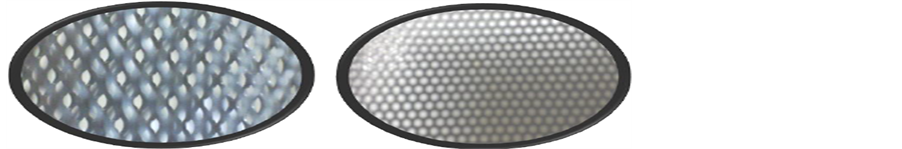 The systems have been tested with the pressure of 6 × 10−5 mbar. An ultra low frequency (ULF) power supply of one KHz frequency, few hundred Volts and 50 - 100 mA currents to produce ultra low frequency of plasma (ULFP) discharge current, where the plasma parameters were measured using double Langmuir probe at very low gas pressures 0.6 mbar, and the distances between the two circular electrodes were separated by small distance 5 mm and were placed normal to the formed plasma, where the interested regions over the perforated aluminum (Al) mesh represent the power electrode with different fine holes, which introduced as a series-parallel arrangement of small holes with sharp edges. Two different kinds of Al meshes to give a variety sputtering discharge, with small hole width and more space between mesh wires represented by 20 fine holes per inch (20 h/in), and large hole width and less space between mesh wires represented by 8 fine holes per inch (8 h/in) as shown in Figure 2(a) and Figure 2(b).