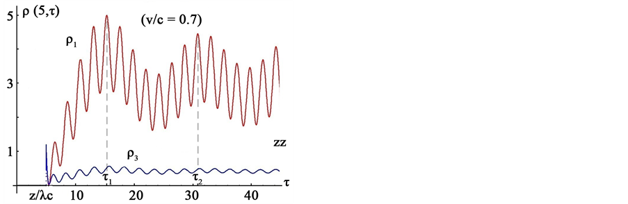 Figure 3. Typical Klein-Gordon diffraction in time for the charge density,