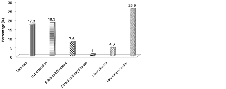 Figure 5. Chronic disease states co-existing amongst carriers of G6PD subjects sampled.