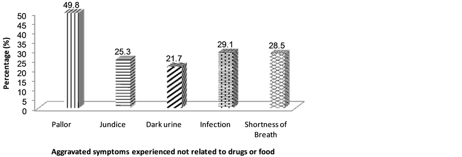 Figure 7. Aggravated symptoms associated with frequent crisis amongst G6PD deficiency subjects that are not drug related.