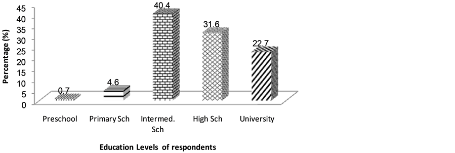 Figure 1. Showing the educational levels distribution of respondents. Sch = School.