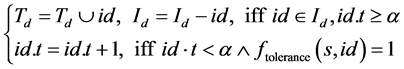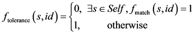1) Affinity evaluation In this section, Hamming distance based matching algorithm [24] is adopted used for calculating affinity between detector and detector/antigen. Take the self-tolerance of detector as an example, the immature detector’s tolerance is successful if immature detector never match all elements of Self at α, conversely, it’s dead. Suppose self
