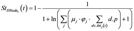 For the ith device/node, Equation (9) is applied to calculate the index value of security situation of the jth kind of attack Attj at time t, Equation (10) is used for calculating the index value of security situation of all kinds of attacks in the ith device/node.