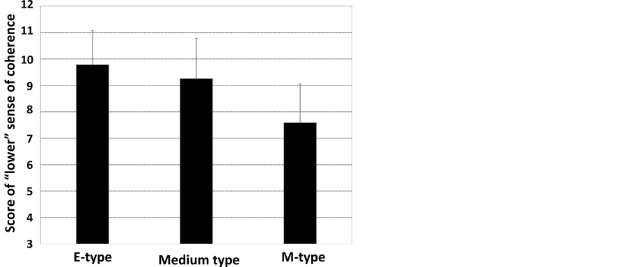 Figure 3. Chronotype and scores on sense of coherence shown by Japanese university soccer club members (higher scores with worse condition) (all males).