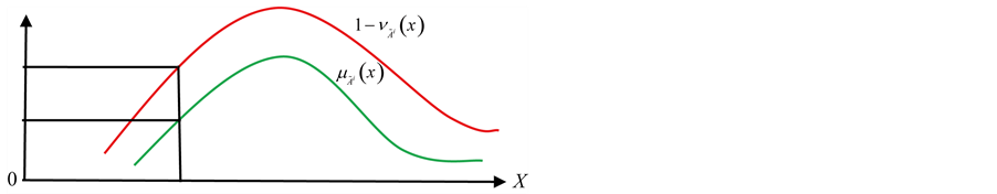 Figure 1. Intuitionistic fuzzy set explanation of a real number.