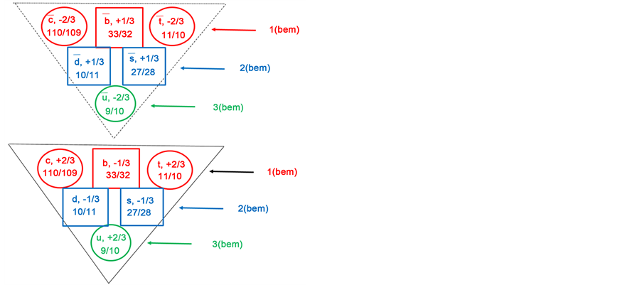 The quark model has been a great success of the Standard Model (SM) and particle physics [1] -[12] . It is a classification scheme for composite hadrons in terms of multiple valence quarks. These are associated with quantum numbers such as isospin, J, parity, and charge of the hadrons. The quark model underlies the Eightfold Way. The composite hadrons are defined by equilateral triangular arrays where there is a valence quark at each corner of a single triangle. However, there is no scheme or “proto” valence quark triangular array for the origin of the internal organization of the valence quarks themselves, such as up or down or charge characteristics. The existing model only defines the organization of the composite quarks within the hadrons not between the quarks themselves. This includes their relative mass, charge, and whether they are up type or down type quarks.