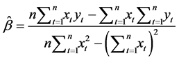 where yt is the dependent variable, xt is the independent variable (in this case, the “years” ), α is the intercept, β is the parameter associated with the independent variable, xt , and et is the stochastic term or error associated with the model.