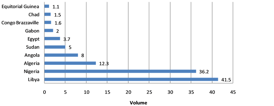 Natural gas was first discovered in Nigeria in 1956, at Afam, Rivers State, in association with oil during the drilling of Oloibiri well (now in Bayelsa State), which was the first commercial oil discovery in the country. However, Nigeria’s natural gas development is still at its infancy, but with very high potential for growth. Various literatures cite that Nigeria is more endowed with natural gas reserves than oil. Nigeria has been considered an oil rich nation in Africa as shown in Figure A1 nevertheless currently, the country is Africa’s largest natural gas holder with a proven reserve of 186.99 tcf and the 7th as shown in Figure A2 and has been described as a gas province with oil pockets. Unfortunately, the Multinational Oil Company at the time of discovery―Shell BP, paid little or no attention to the utilization of this resource since it was not their primary drilling objective. At this early stage of development, there was no legislation governing the utilization of natural gas in the country, while, at the same time, there was little or no market for the commodity. A recent study conducted by the World Bank revealed that developing countries account for more than 85% of gas flaring and venting worldwide, with Nigeria being the largest [1] . The first utilization of gas could be traced to 1963 when Shell BP sold and supplied the resource obtained from fields in Aba and Ughelli to industries around the areas. Later, the company started supplying the commodity to the then Electricity Corporation of Nigeria (ECN), later named National Electricity Power Authority (NEPA), and now known as Power Holding Corporation of Nigeria (PHCN) at its Afam plant in Rivers State. The commodity was also supplied to the River State Utility Board in Port Harcourt, capital of Rivers State.