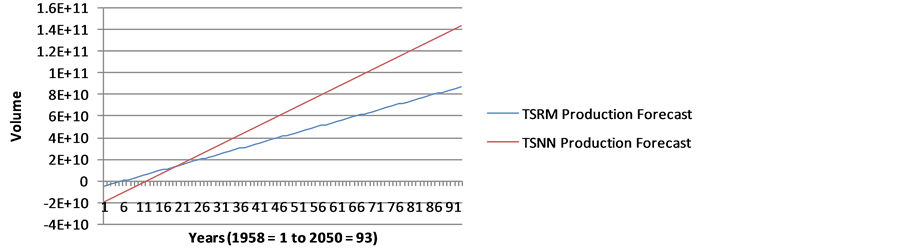 Figure A6. Forecast of Natural Gas Production in Nigeria (1958-2050) using TSRM and TSNN.