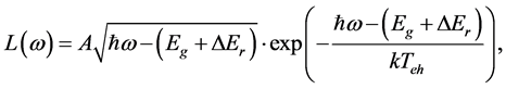 Strictly speaking, the PL of a polycrystalline film is formed at different depths and microregions, based on different mechanisms of radiative recombination. Thus, it is rather difficult to perform exact analytical calculation of the PL spectrum. However, some rough approximations can be made based on formula (1) and the above physical considerations. In particular, preliminary quantitative analysis of the spectra of A emission line shows that it can be described in the first approximation by the formula