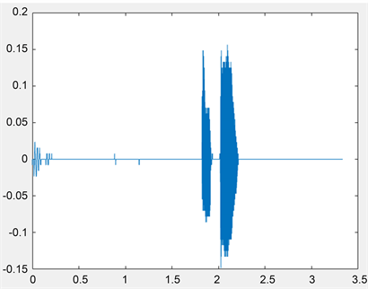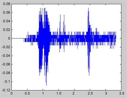 Entirely scattered background noise has already been reduced in the time domain analysis. However, the microphone which the author bought has several issues. First of all, as shown in Figure 12, at times, when the microphone starts recording the voice, it produces unintended noise at the beginning. When the