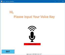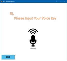In the first window, shown in Figure 1, users could enter the username and password for their account, and able to create a new account if needed. In second interface as shown in Figure 2, the system would ask the user to speak their voice key and match it with the audio reference inside the system’s database.