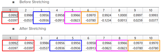 Figure 19. Matrix stretching error example: (1) Before stretching (upper), (2) After stretching (lower).