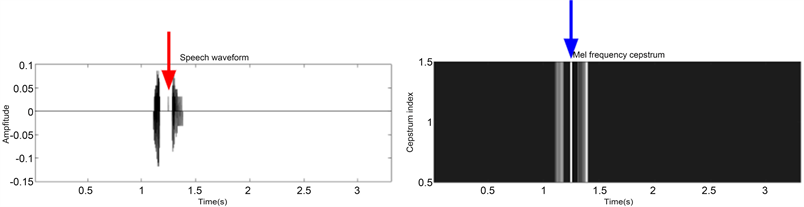 Figure 20. Uncontrollable noise error example: (1) Voice signal (left), (2) Mel-Frequency Cepstrum (right).