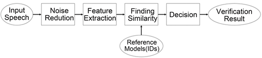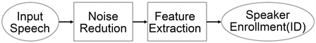 The Speaker Enrollment Session includes Speech Input, Noise Reduction, Feature Extraction, and Speaker Enrollment. In the Speaker Enrollment Session, each user is enrolled with specific parameters which are derived from the Feature Extraction phase. Also, the same specific parameters will be used in the Speaker Verification Session, especially in the Finding Similarity phase. Other specific parameters which are derived from the Speaker Verification Session will be compared with each registered reference model. In addition, in the Speaker Verification Session, the system will decide whether the user gains access to certain profiles or not, which depends on a defined tolerance level for similarity between registered parameters and the newly inputted signal.