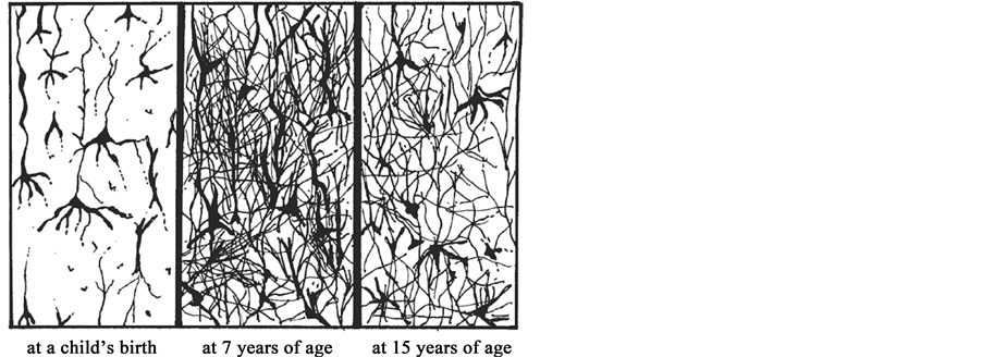 He concluded how human brain “grow” and “work” in early stage as shown in Table 1 below.