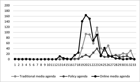 Figure 3. Relationship between online media, traditional media and public policy agenda.