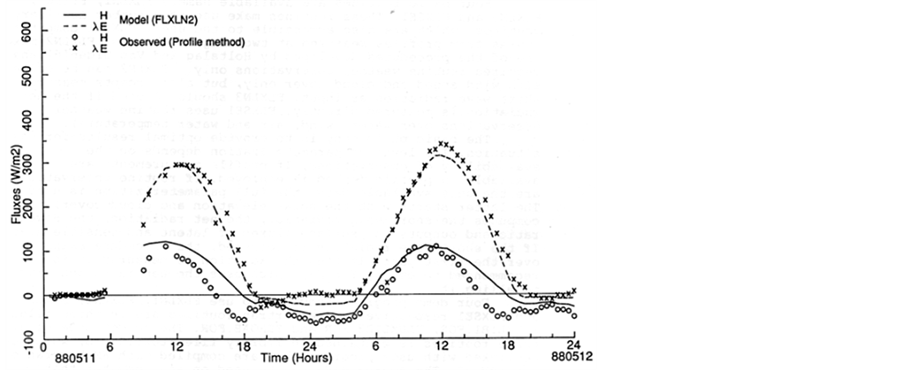 Finally we present some results of the calculation of sensible and latent heat model made for Van Ulden and Hostlag in the city of Cabauw in the Netherlands in which presents results of such flows for hours during these days [10] , Figure 4.