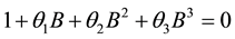 It is important to know that (2.2) is a cubic equation. Detailed information on how to solve cubic equations can be found in [7] [8] among others. It has been a common tradition to consider the nature of the roots of a characteristic equation while determining the invertibility condition of a time series model [9] . As a cubic equation, (2.2) may have three distinct real roots, one real root and two complex roots, two real equal roots or three real equal roots. The nature of the roots of (2.2) is determined with the help of the discriminant [8]