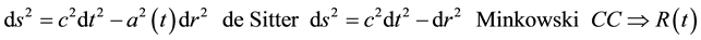8In the model of Einstein-de Sitter (1932) there is also a Parabolic-Euclidean solution (K = 0) with Critical density. Nevertheless it is a model (with Λ = 0) for usual matter. This model is today obsolete because usual matter seems to occupy only 1% of critical density. Hoyle’s Steady State is also based on metric (18-de Sitter) with a null CC. Minkowskian fluid involves a perfect cosmological principle (Hoyle-Bondi).