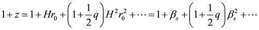 (with standard notations of the time of emission of radial photon from a remote galaxy towards the time of reception in our galaxy). Moreover with two usual cosmological measurable parameters H and q, we obtain the following standard development into series: