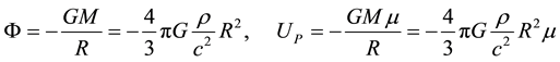 is assumed to exist only in a limited sphere whose surface acts like a “test body” sensitive to the gravitational field created by the fluid. The surface is submitted to gravitational attractive potential: