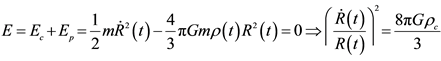 6Our pseudo-Newtonian model, entirely based on (12), cannot be confused with historical Friedman’s Newtonian model. Friedman considered a sphere of material fluid with variable radius