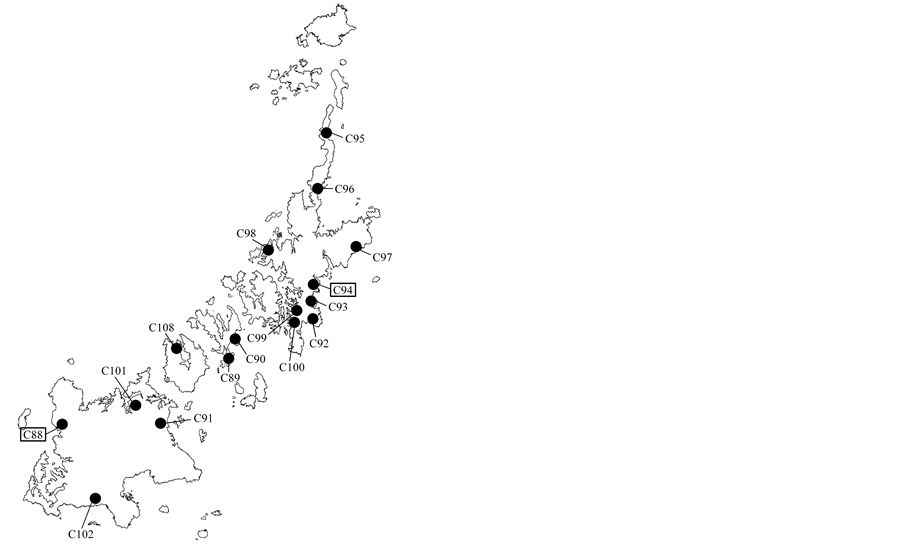 Biogeography, especially phylogeography, investigates the history of organisms by focusing on generalized information and using genetic variation as an index by employing improved gene technologies [1] . The studies that focus on climate change in the past and the repetition of glacial and interglacial events by using genetic variation from these regions have been conducted for different organisms [2] -[4] . In East Asia, fluctuations in sea levels produce dynamic changes in land configurations during the quaternary glacial period [5] -[9] . This has affected the fragmentation and connection of natural habitats within this area, which result in the plant species richness and endemism in East China, Southern Japan, and the Korean Peninsula [10] [11] . The islands of Japan, located in such a region of East Asia, are a hotspot of distribution changes because of immigration to and emigration from continental Asia.