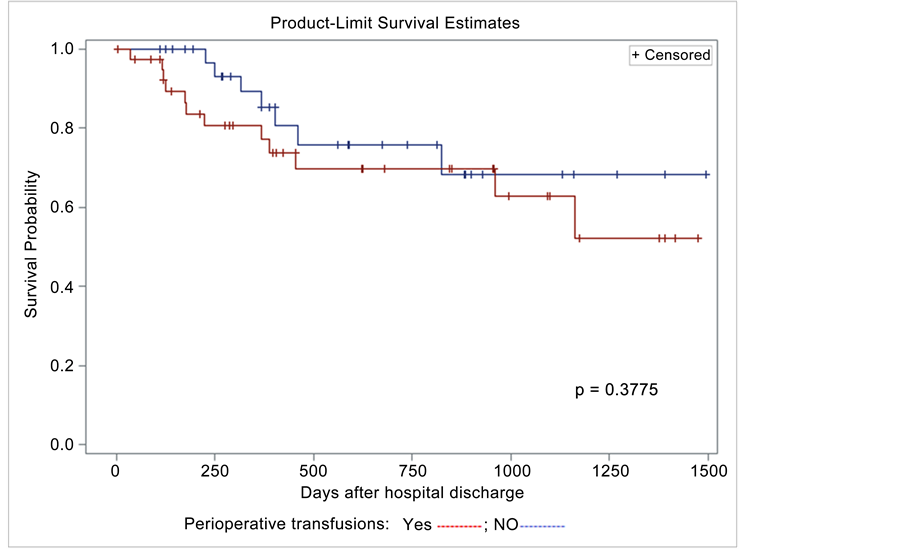 Figure 6. Perioperative transfusions and survival probability.