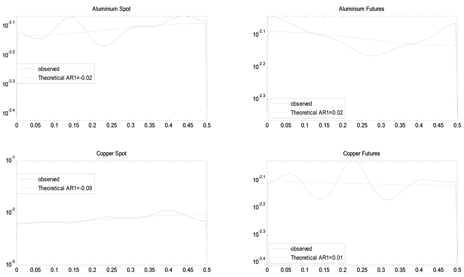 Subsequent to the introduction of the statistical concept of cointegration of time series by the seminal works of Granger [7] , Engle and Granger [8] and Johansen [9] , several researchers have applied cointegration and error correction models to examine the long-run and short-run equilibrium relationship between futures and spot prices. For example, Serletis and Banack [10] , Crowder and Hamed [11] and Schwarz and Szakmary [12] examined efficiency of petroleum futures markets by using cointegration analysis. Chowdhury [13] examined the nonferrous metal futures markets’ efficiency by using cointegration for copper, lead, tin and zinc. Beck [14] performed tests on long run and short run market efficiency for cattle, orange juice, hogs, corn, copper, cocoa and soybean, with the help of cointegration and error correction model. McKenzie and Holt [15] investigated the long run and short run market efficiency using cointegration and GQARCH-M-ECM. The results show that live cattle, hogs, corn and soybean meal futures markets are both efficient and unbiased in the long run, however, inefficiencies and pricing biases in the form of a dynamic lag structure exist in the short run.