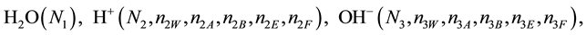 In this paper, we refer also to more complex media with the mixture of co-solvents: W, A, B, E and F. We assume that the co-solvents are mutually miscible and at least one of the co-solvents has amphiprotic properties