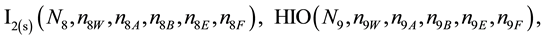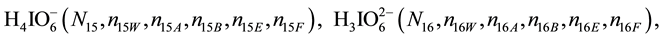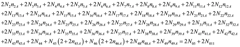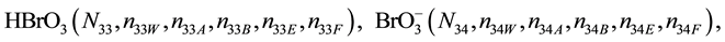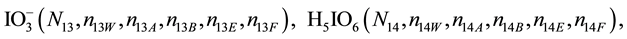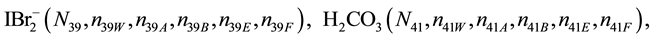 . On this basis, the elemental balances f(E(i)) for particular elements E(i) are formulated. For ordering purposes, we denote: E(1) = H, E(2) = O, E(3) = I, E(4) = C, E(5) = S, E(6) = N. We apply also the balances f(C(Y)) for the cores C(Y), Y = A, B, E, F. The “core” is a cluster of elements of the same composition, structure and charge, that does not undergo a change in the system in question; e.g., CH3OH,