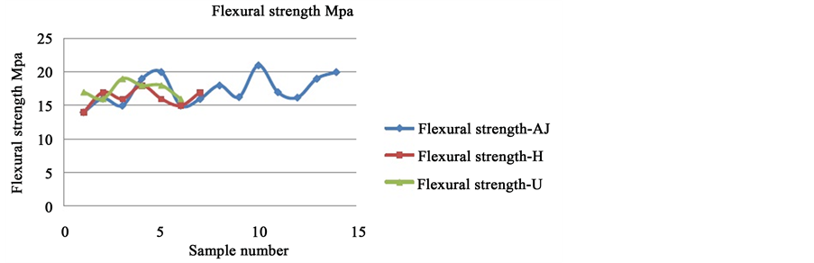 The results of the Flextural strength (N/mm2) for the tested samples are shown in Figure 6.