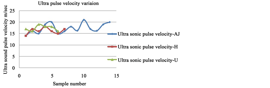 The obtained resluts are corrolated with the direct destructive testing results obtained for the same samples. The results of pulse velocity as m/sec are shown in Figure 7.