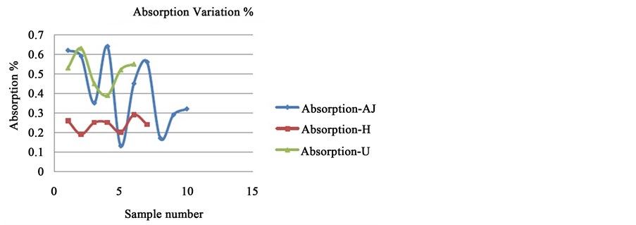 The absorption results of the Hamrat granite showed lower absorption value. In general all absorption results are vey low and considered advantageous. The results are shown in Figure 4.